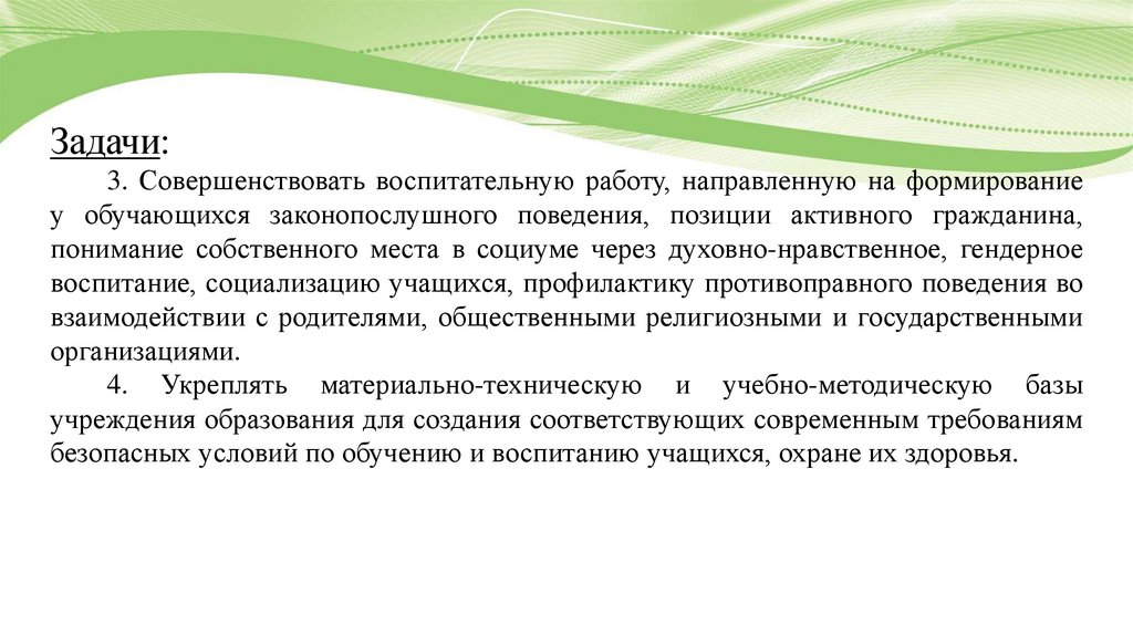 Задачи:3. Совершенствовать воспитательную работу, направленную на формирование