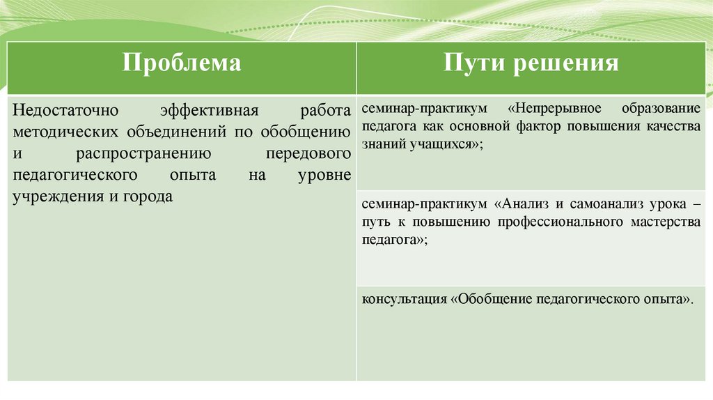 ПроблемаПути решения