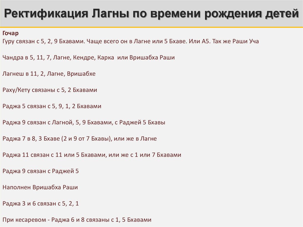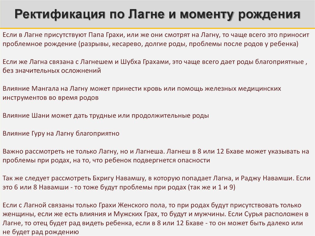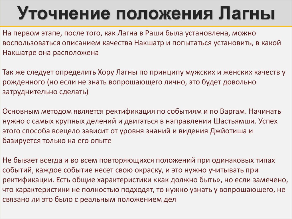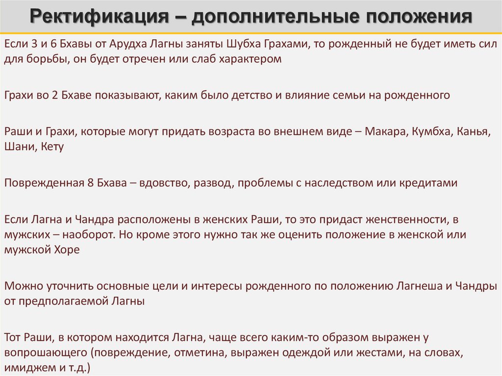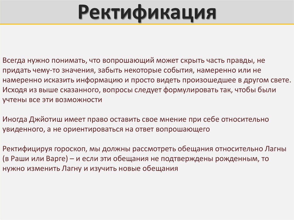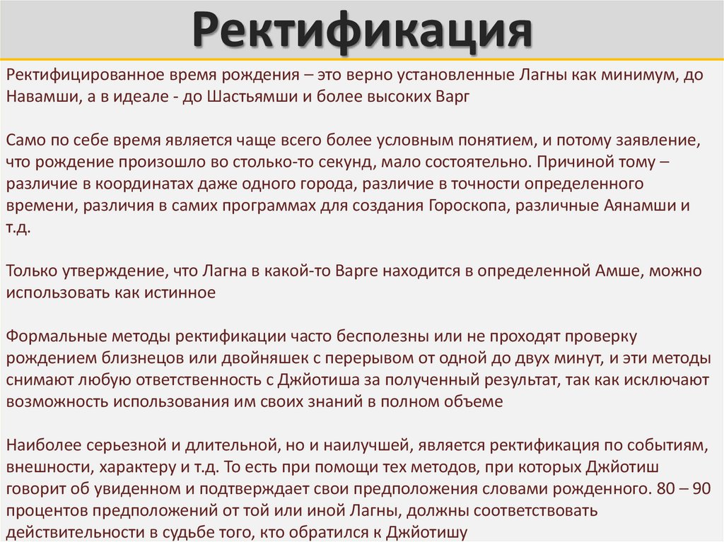 РектификацияРектифицированное время рождения – это верно установленные Лагны как минимум, до