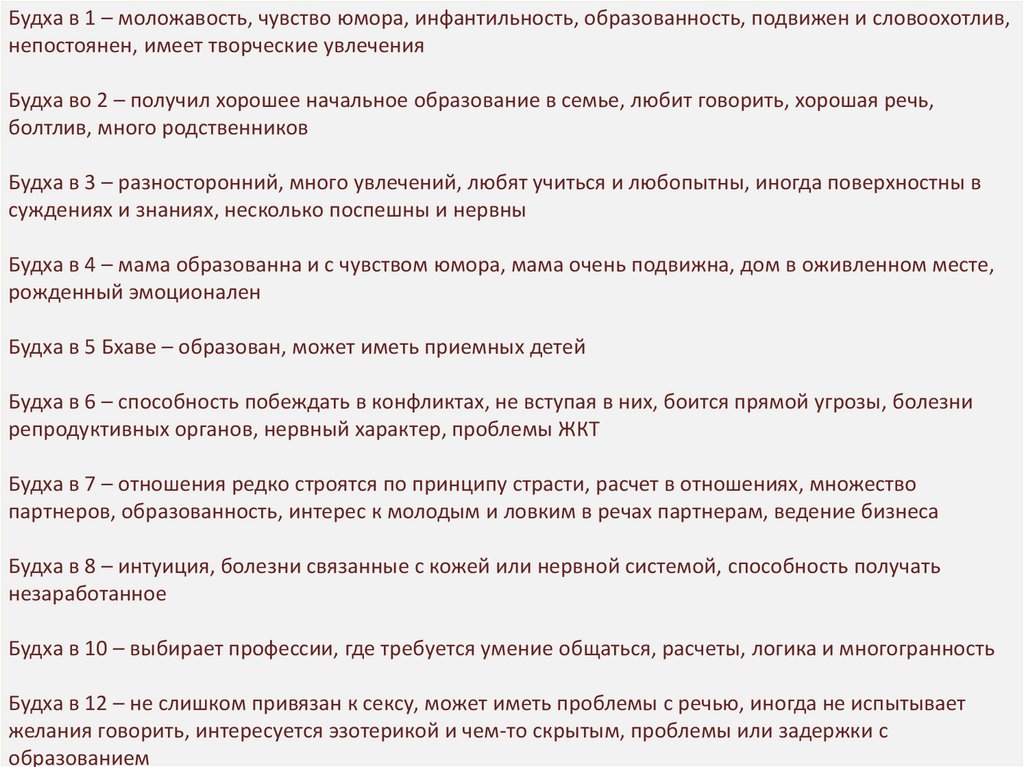 Митхуна – управляется Будхой. Будха Уча в 4 Бхаве, что указывает на сильный ум и беспокойный характер, на