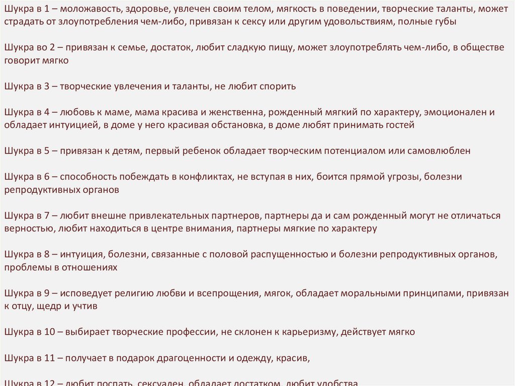 творческие наклонности. Шукра так же управляет 6 Раши от Вришабхи, и 10 Раши находится в Раши Шани –