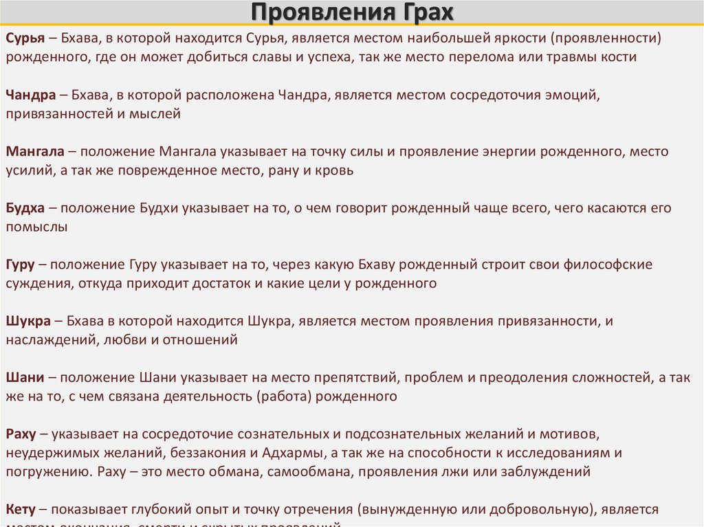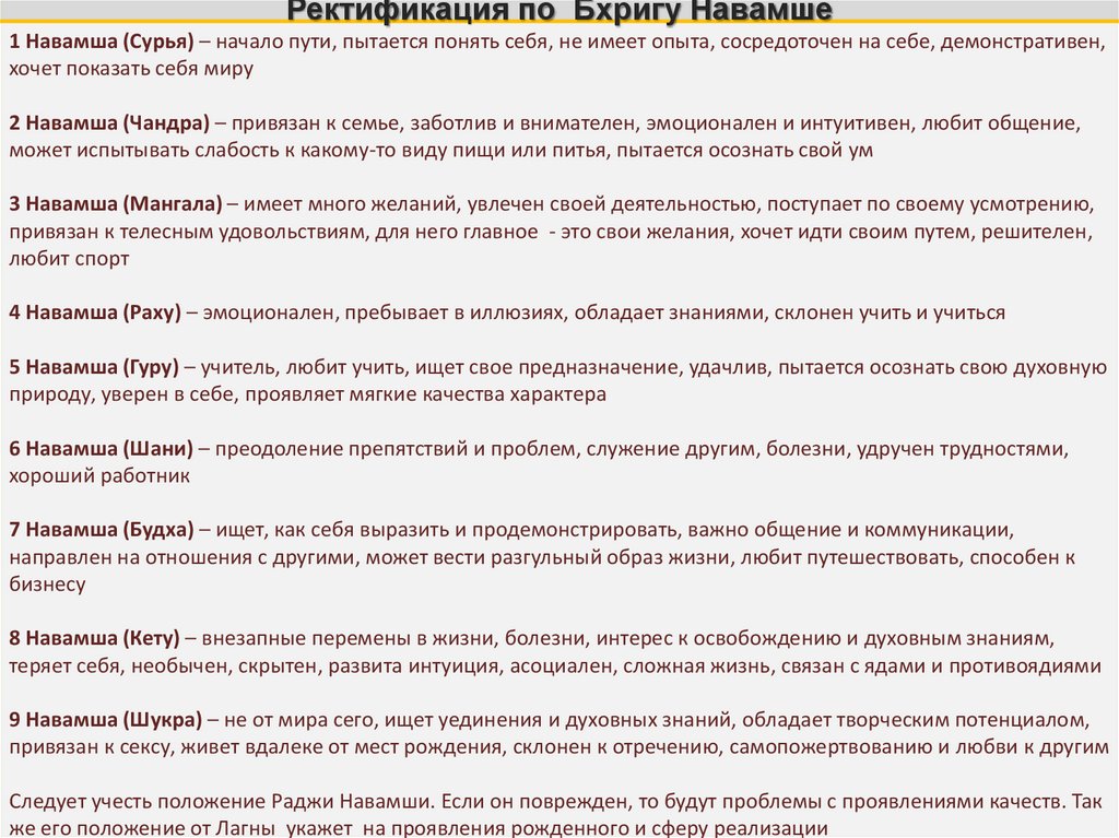 указывается так же и положение в Триконе или 7 Бхаве от Сурьи или Чандры в Шастьямше,
