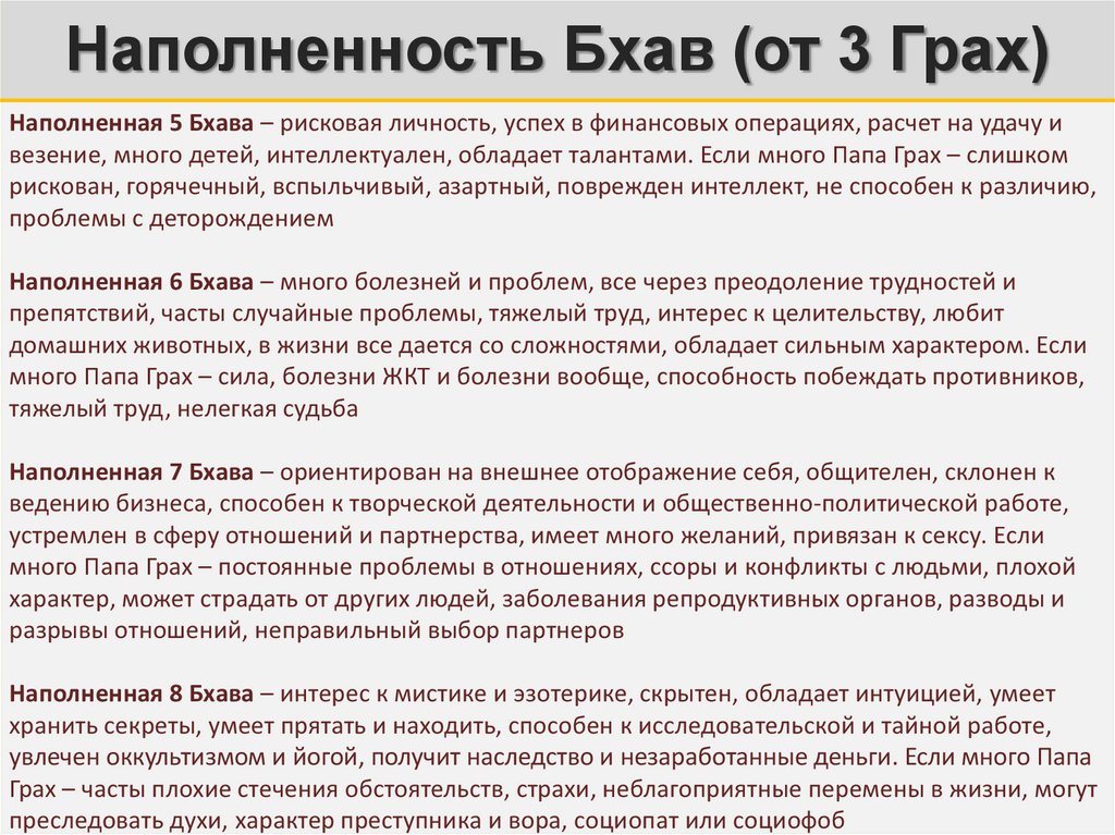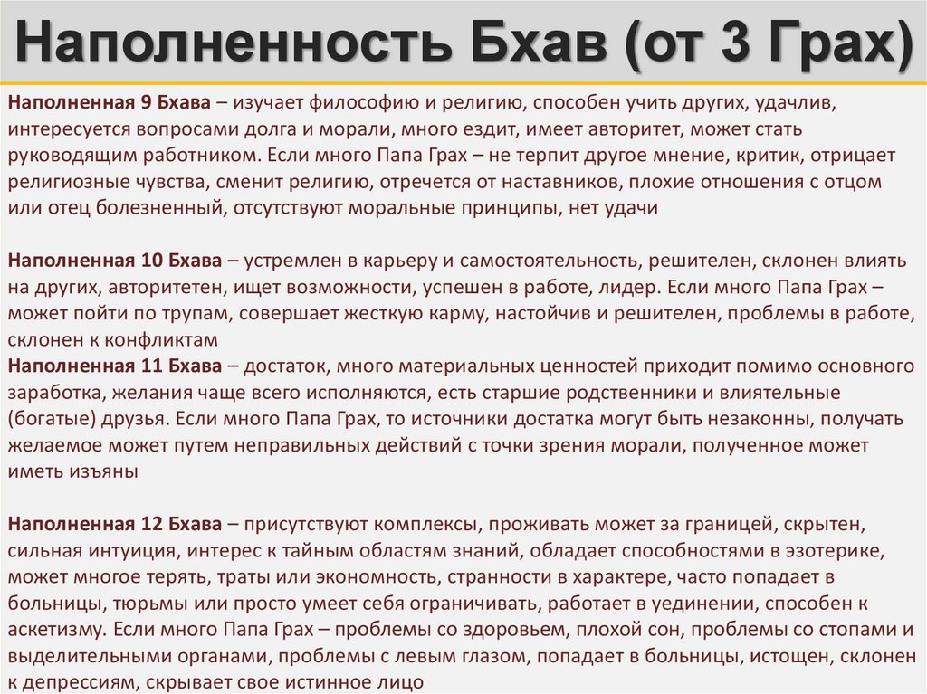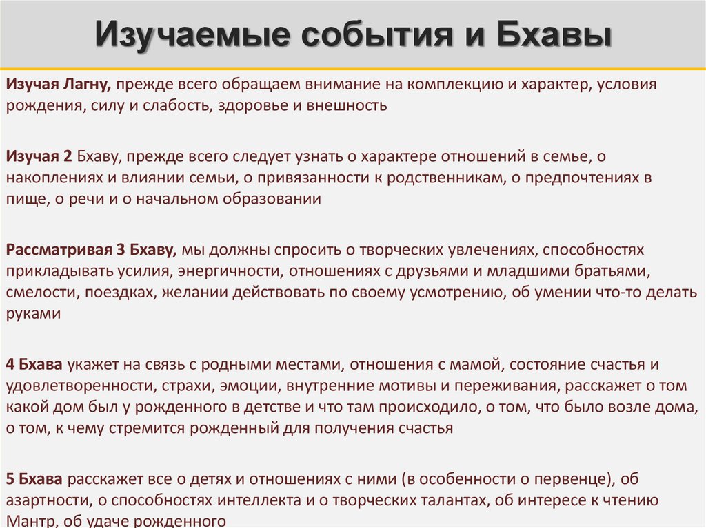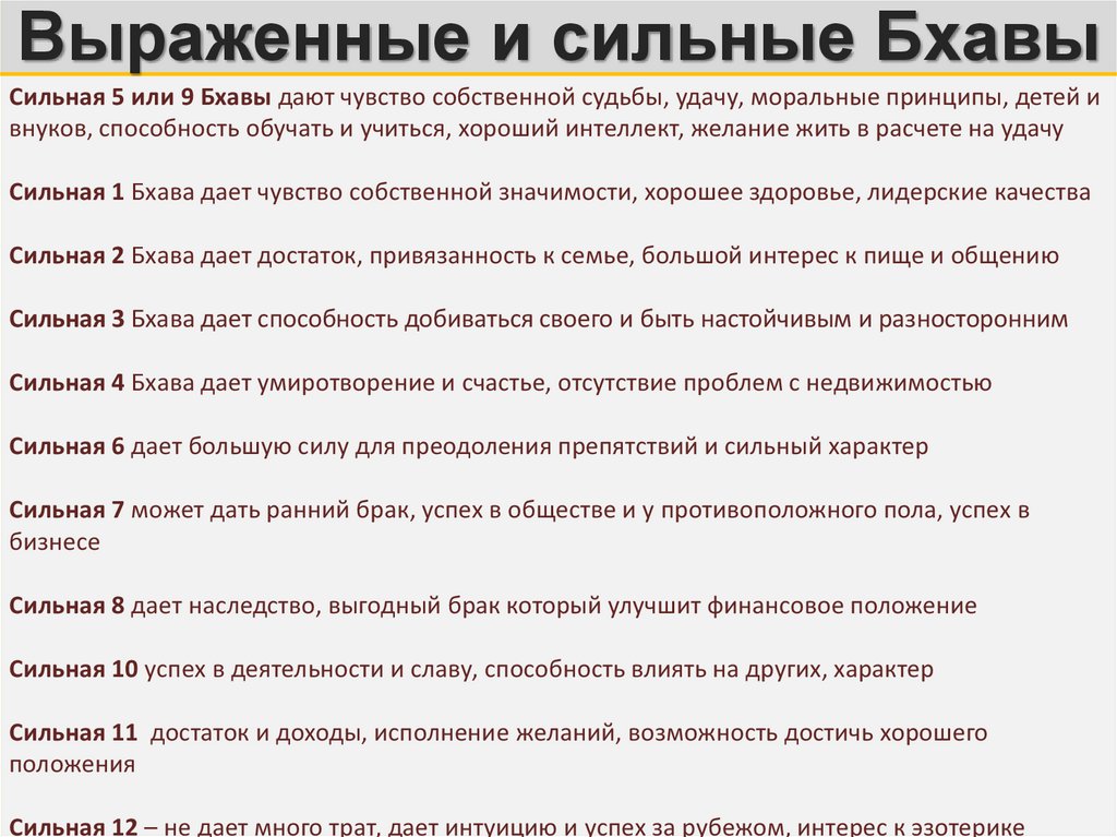 1 Бхава представляет жизнь от 0 до 1 года, 2 Бхава - от 1 и до 2 лет и т.д., 12 Бхава