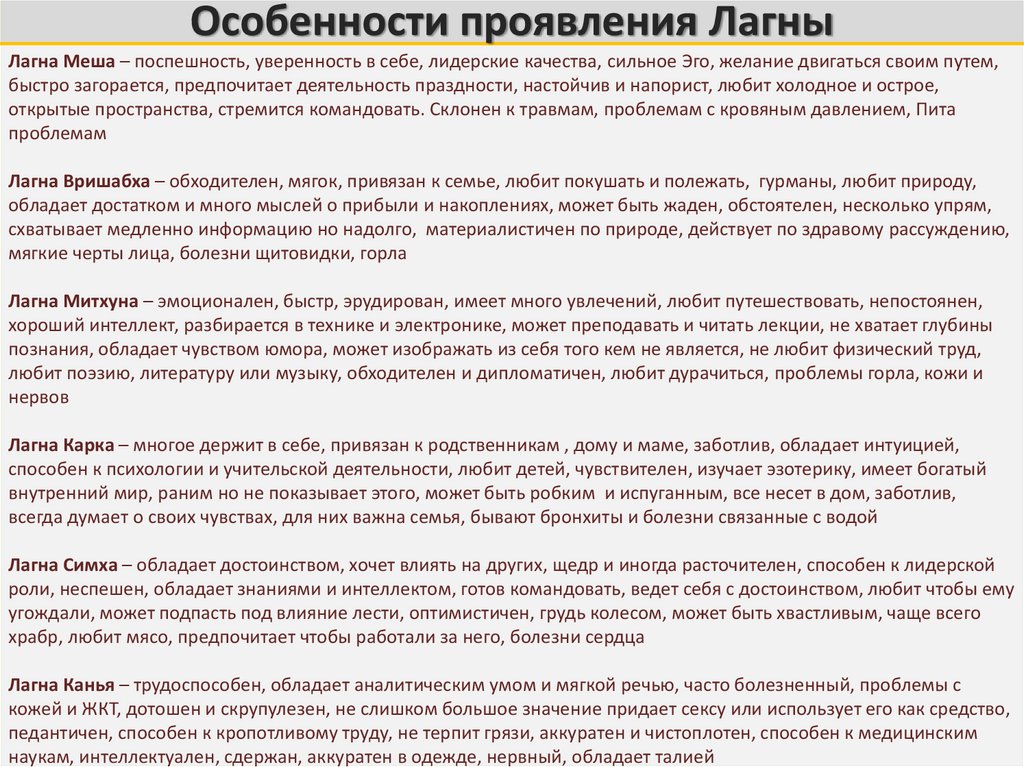Особенности проявления ЛагныЛагна Меша – поспешность, уверенность в себе, лидерские качества, сильное Эго, желание двигаться своим путем,