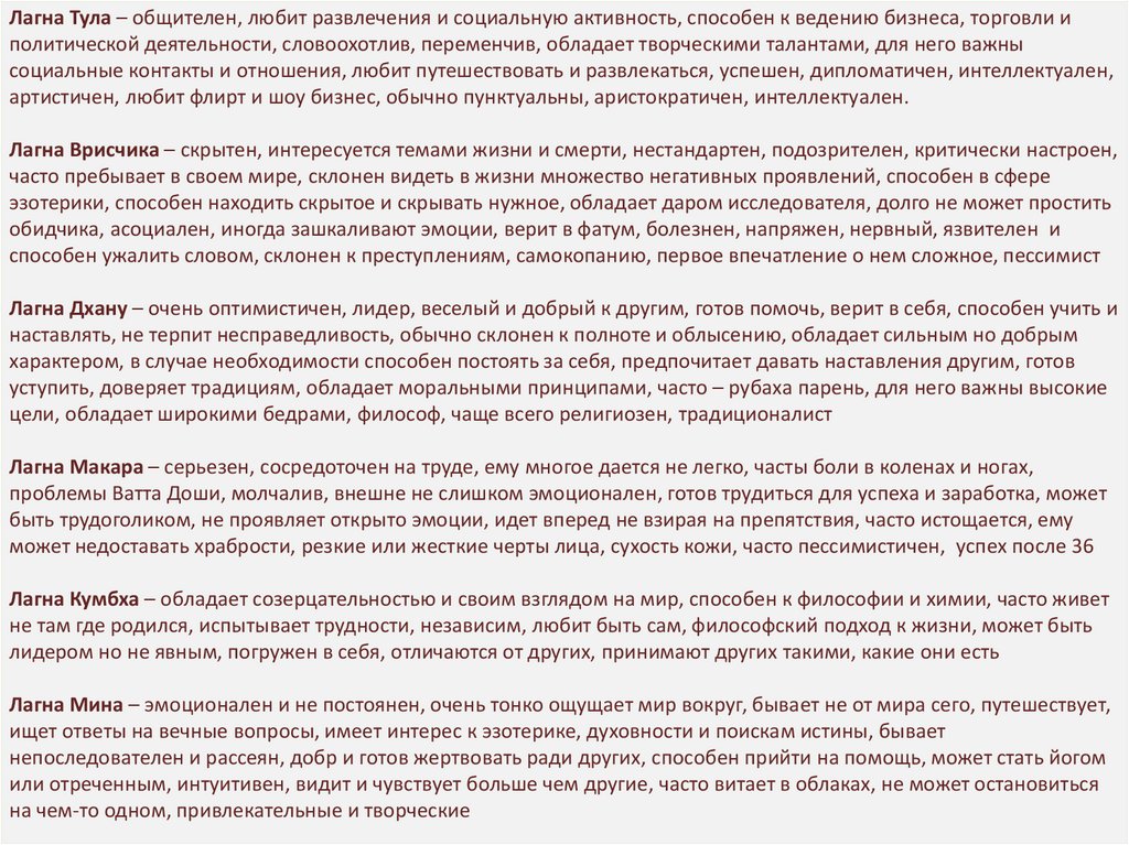 Лагна Митхуна – эмоционален, быстр, эрудирован, имеет много увлечений, любит путешествовать, непостоянен,