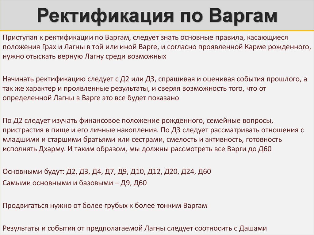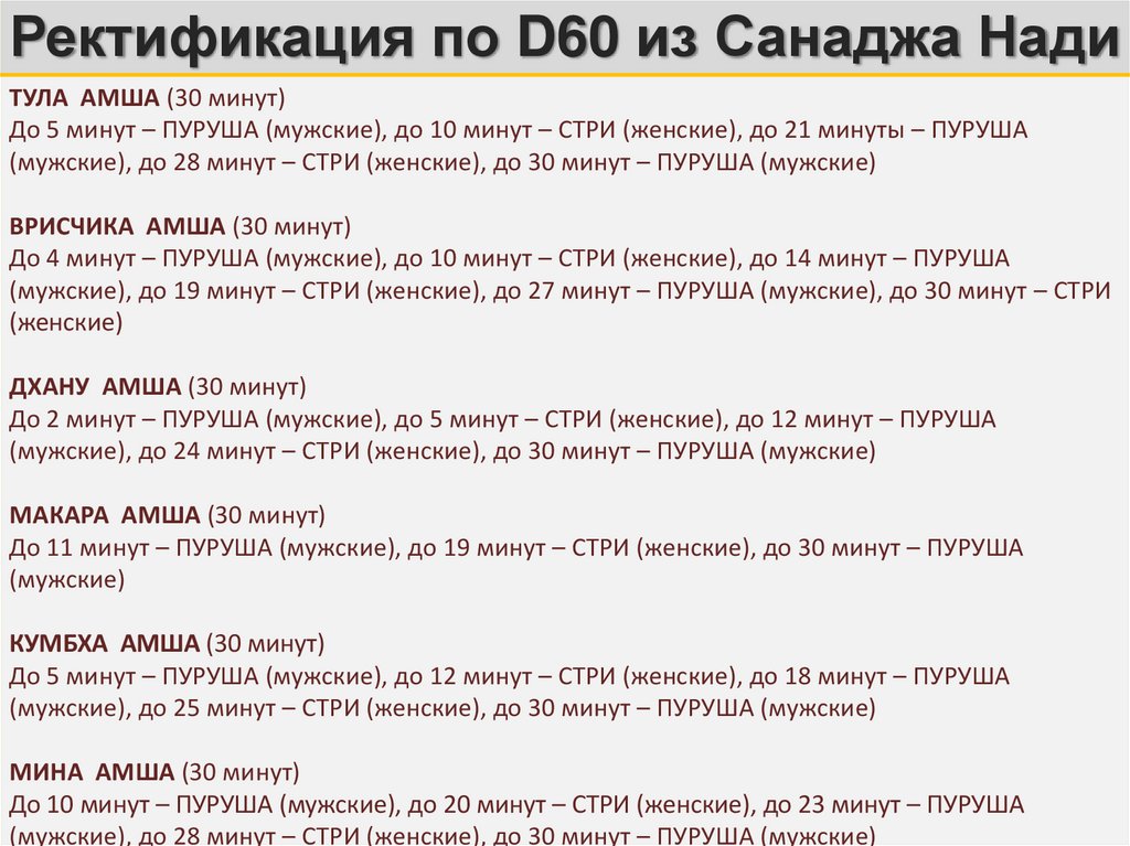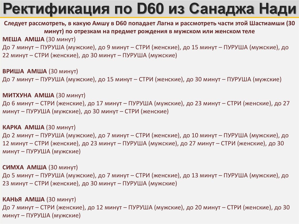 Ректификация по D60 из Санаджа НадиСледует рассмотреть, в какую Амшу в D60 попадает Лагна и рассмотреть части этой Шастиамши (30
