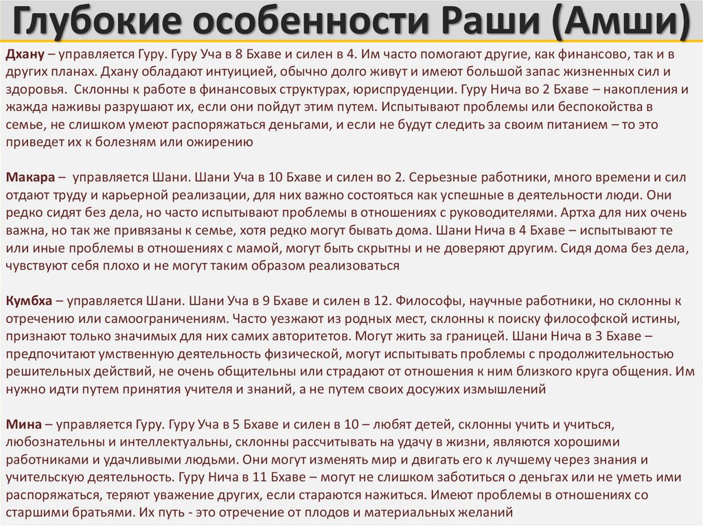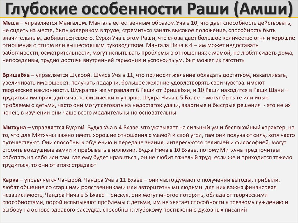 Глубокие особенности Раши (Амши)Меша – управляется Мангалом. Мангала естественным образом Уча в 10, что дает способность действовать,