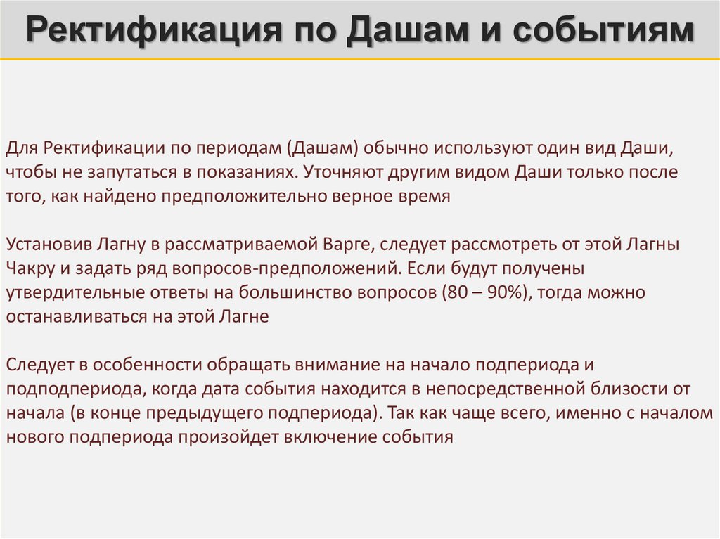 Наиболее серьезной и длительной, но и наилучшей, является ректификация по событиям,