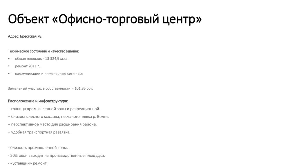 Объект «Офисно-торговый центр»Адрес: Брестская 78.