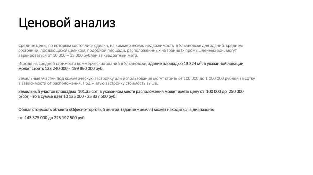 Исходя из средней стоимости коммерческих зданий в Ульяновске, здание площадью 13 324 м², в указанной локации