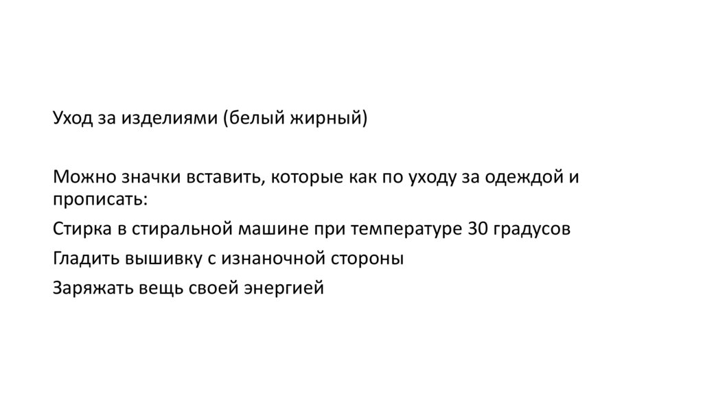 Уход за изделиями (белый жирный)Можно значки вставить, которые как по уходу за одеждой и