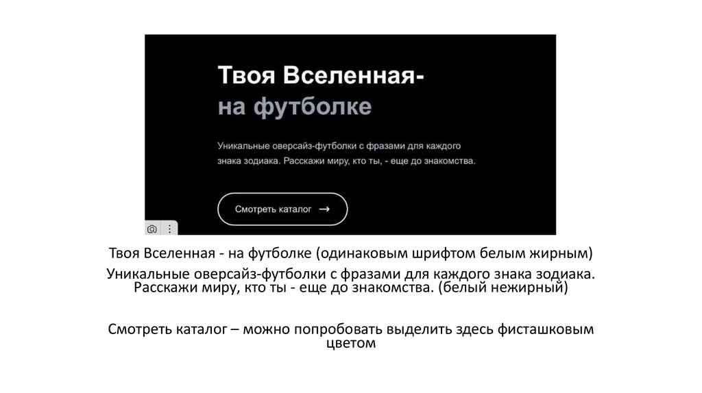 5. Убрать слова наша продукция Оставить так одинаковым шрифтом белый нежирный: Одежда, где стиль встречается со смыслом и твоя