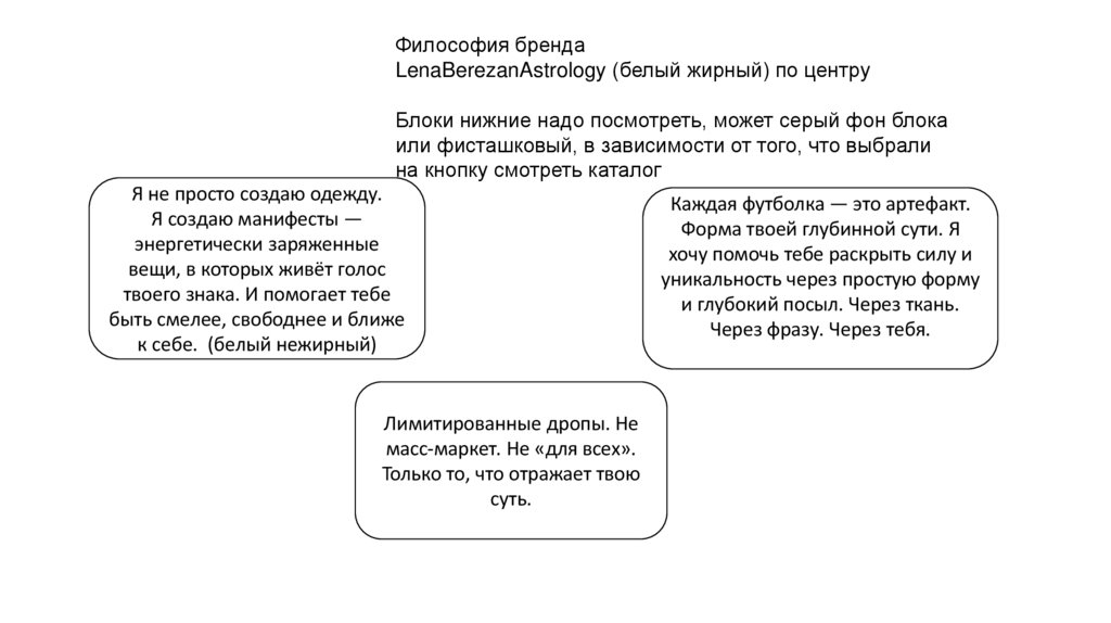 Философия брендаLenaBerezanAstrology (белый жирный) по центру