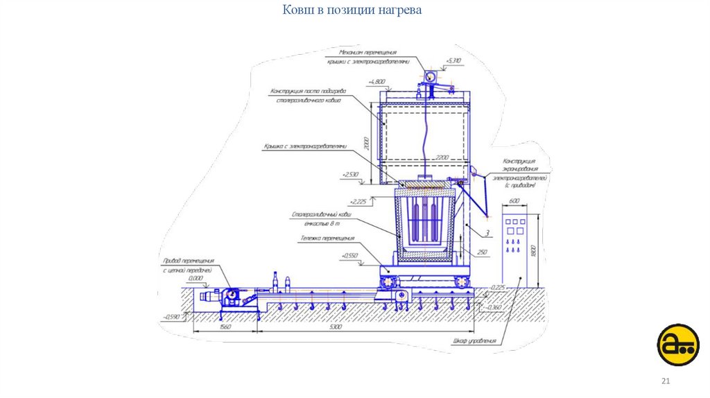 Участок нагрева ковшей включает в себя 4 основные зоны (места размещения):