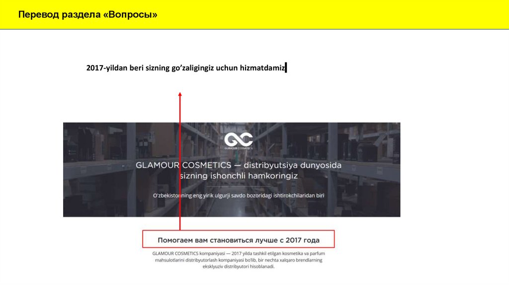 Перевод раздела «Вопросы»2017-yildan beri sizning go’zaligingiz uchun hizmatdamiz