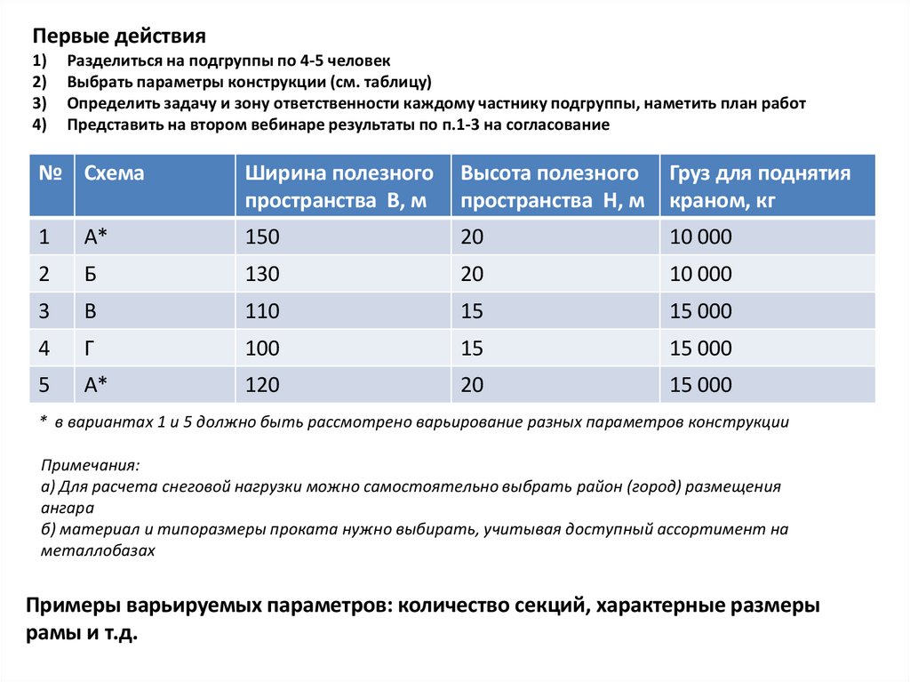 * в вариантах 1 и 5 должно быть рассмотрено варьирование разных параметров конструкции