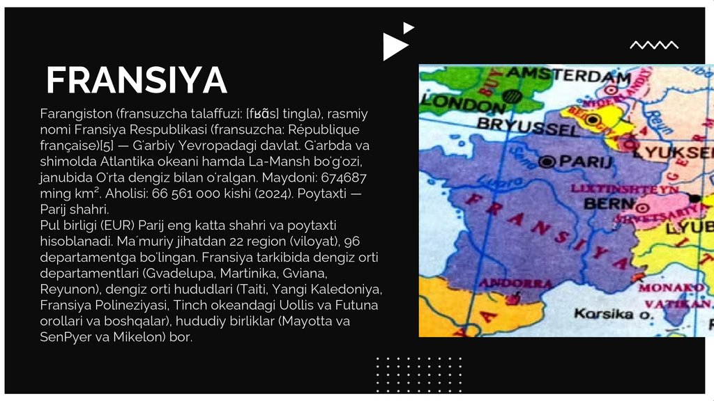 FRANSIYAFarangiston (fransuzcha talaffuzi: [fʁɑ̃s] tingla), rasmiy
