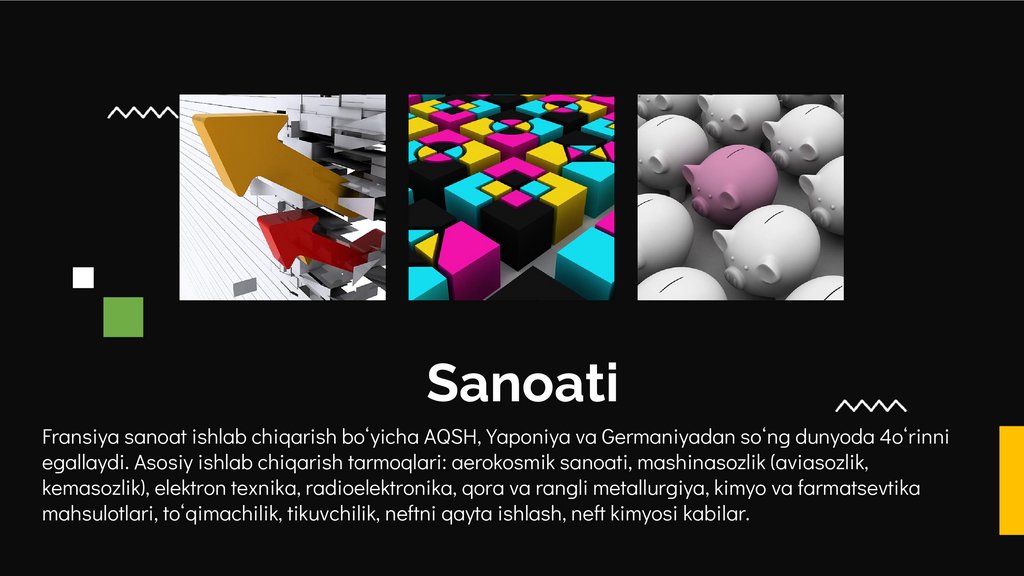 SanoatiFransiya sanoat ishlab chiqarish boʻyicha AQSH, Yaponiya va Germaniyadan soʻng dunyoda 4oʻrinni