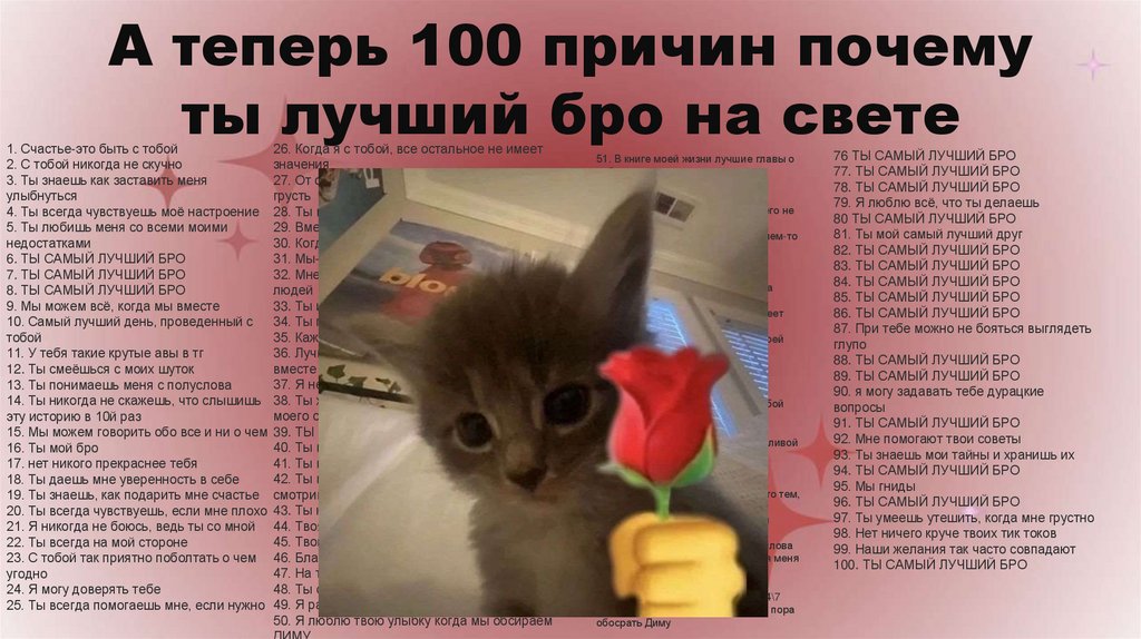 25. Ты всегда помогаешь мне, если нужно 49. Я радуюсь когда мы обсираем Диму