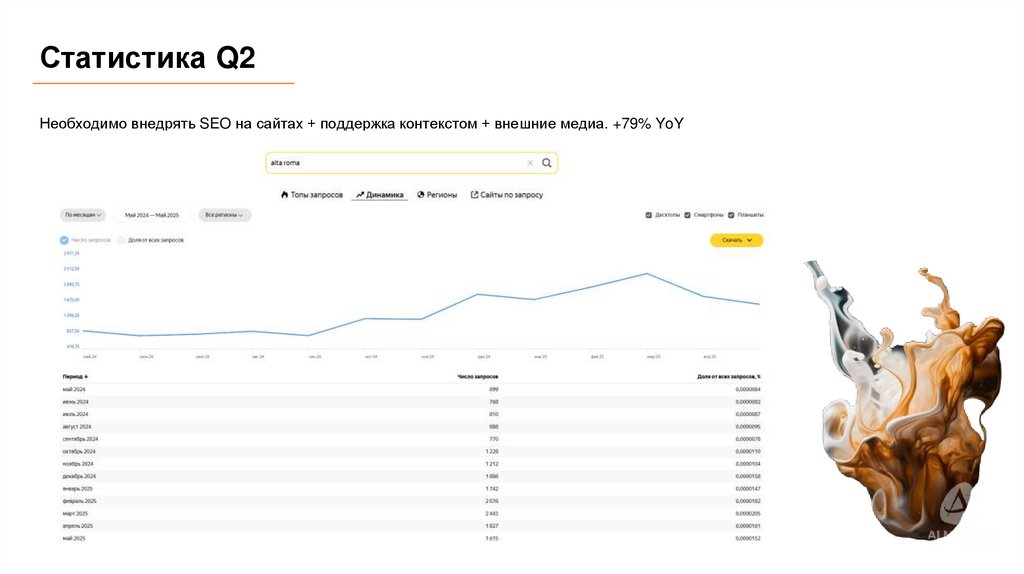 Статистика Q2Необходимо внедрять SEO на сайтах + поддержка контекстом + внешние медиа. +79% YoY