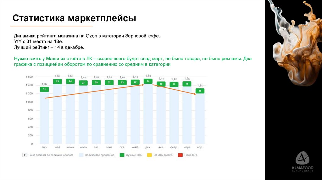 графика с позициейии оборотом по сравнению со средним в категории