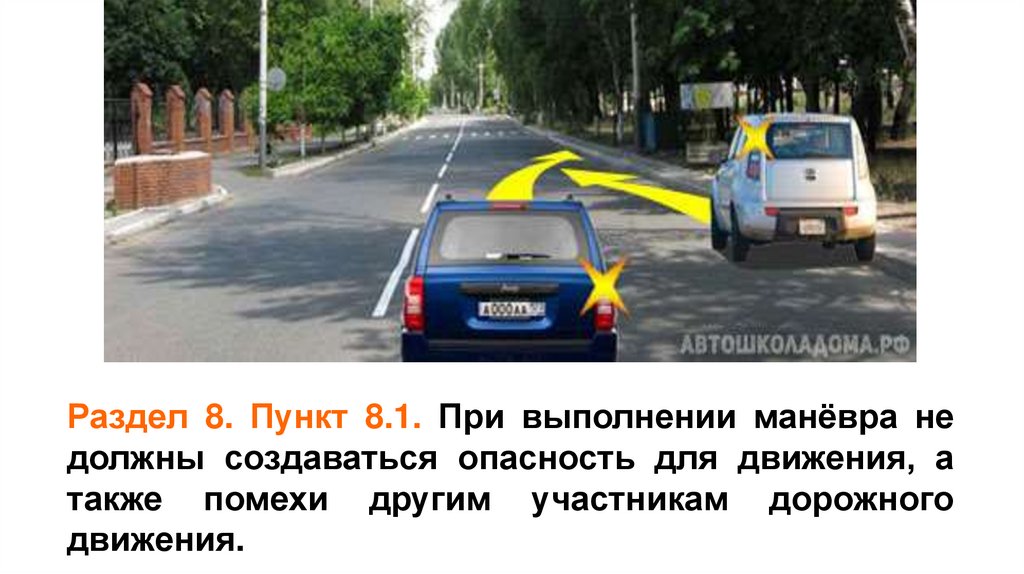 Раздел 8. Пункт 8.1. При выполнении манёвра недолжны создаваться опасность для движения, а