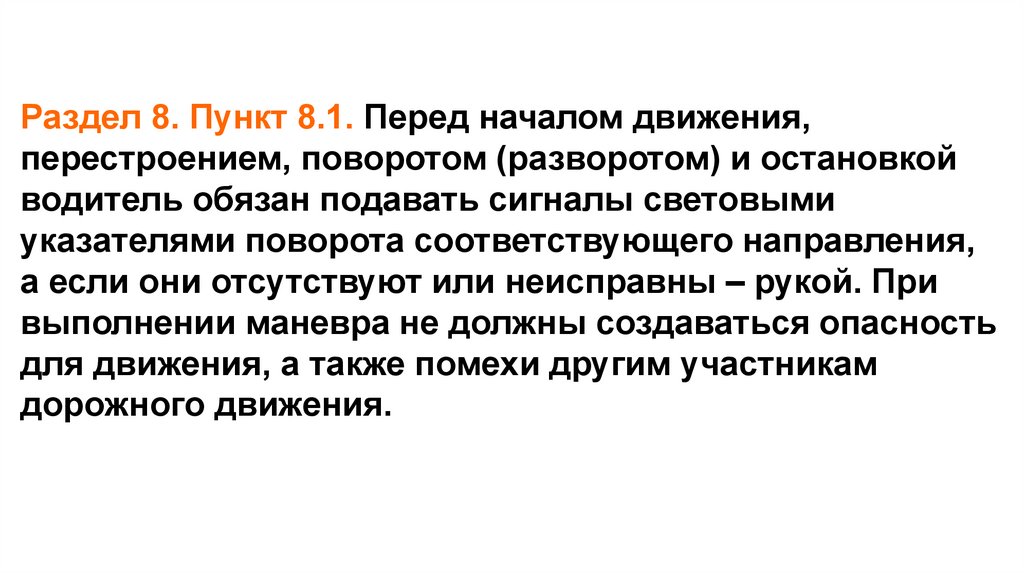 Раздел 8. Пункт 8.1. Перед началом движения,перестроением, поворотом (разворотом) и