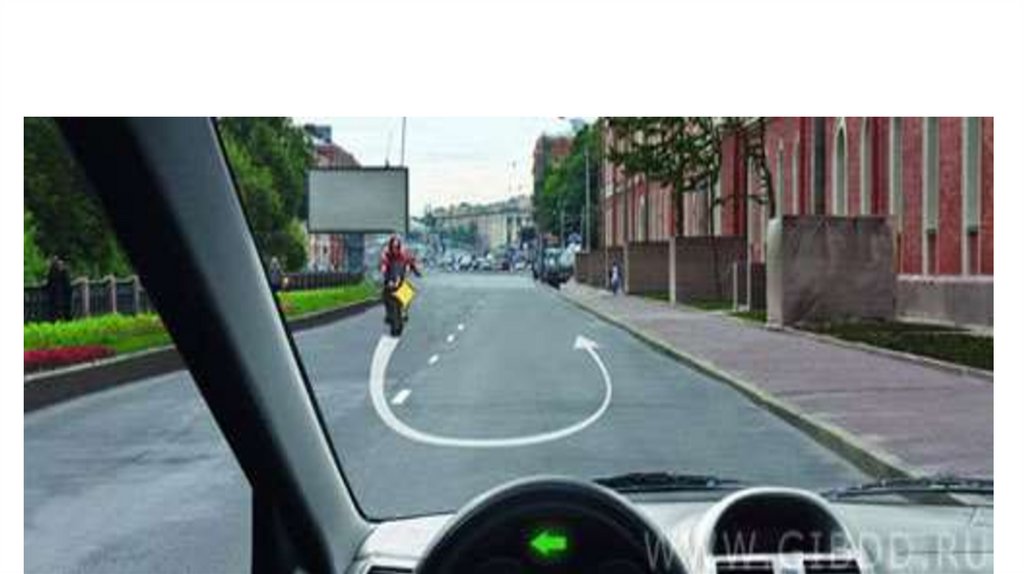 Если сейчас вы собираетесь развернуться на первом пересечении проезжихчастей, то уже пора включать левые указатели поворота.