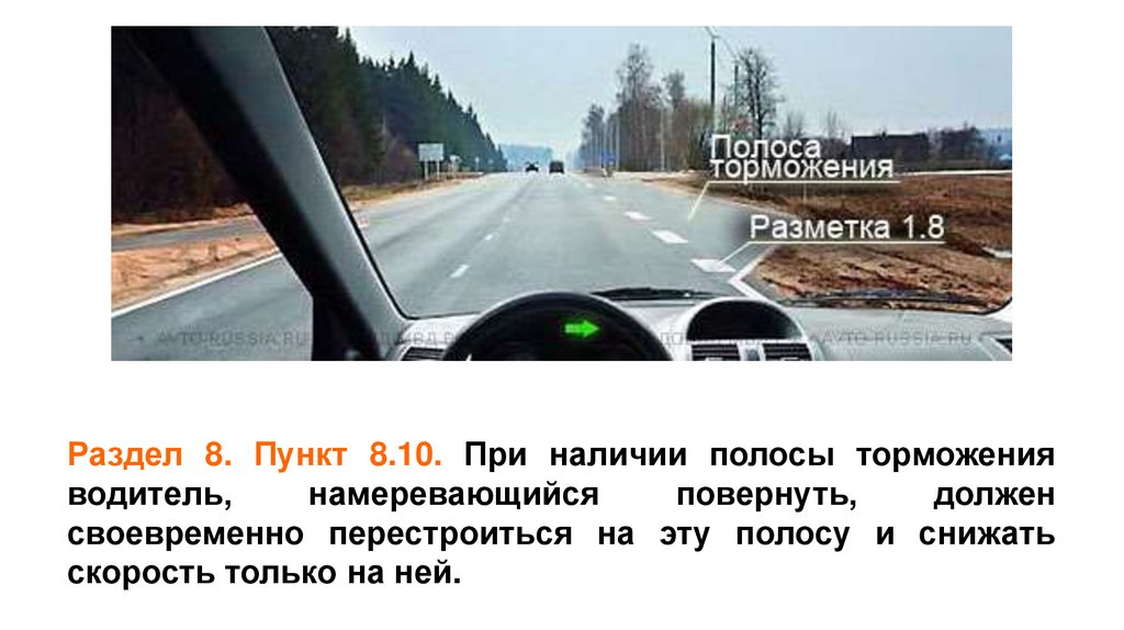 Раздел 8. Пункт 8.10. При наличии полосы торможенияводитель,