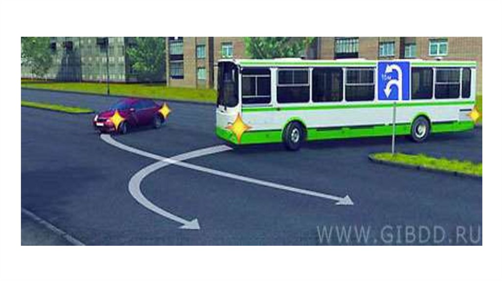 Разворот запрещён в местах остановок маршрутныхтранспортных средств.