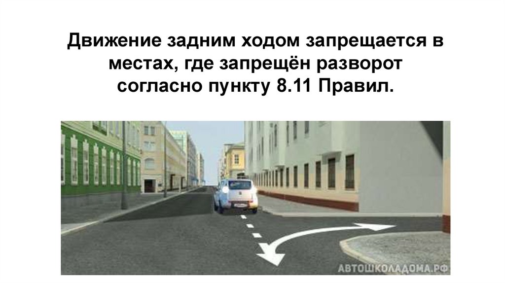 Движение задним ходом запрещается вместах, где запрещён разворот