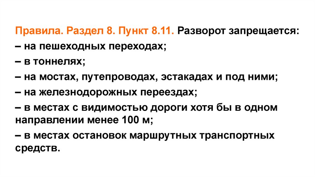 Правила. Раздел 8. Пункт 8.11. Разворотзапрещается:
