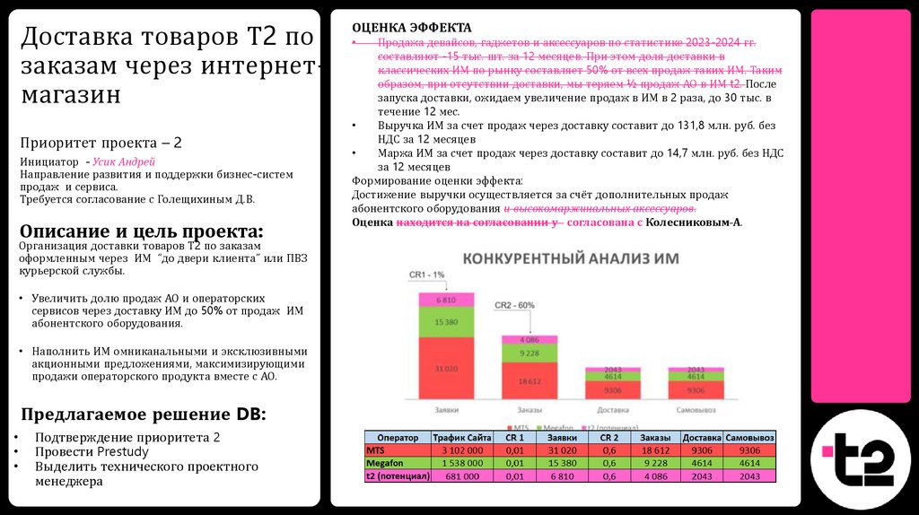 образом, при отсутствии доставки, мы теряем ½ продаж АО в ИМ t2. После