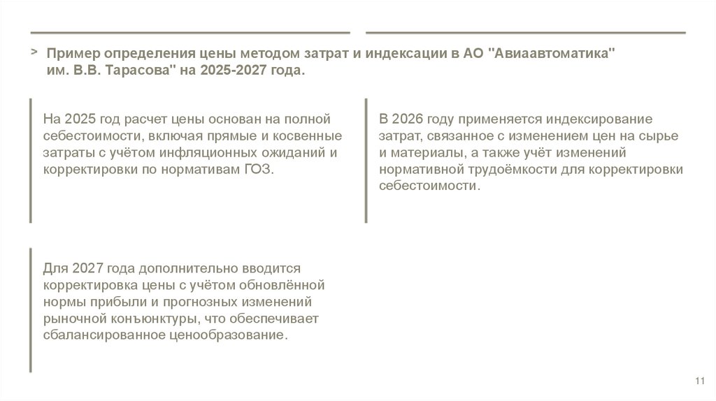 Пример определения цены методом затрат и индексации в АО "Авиаавтоматика"им. В.В. Тарасова" на 2025-2027 года.