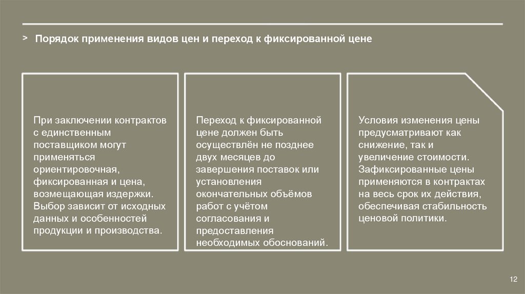 Порядок применения видов цен и переход к фиксированной ценеПри заключении контрактов