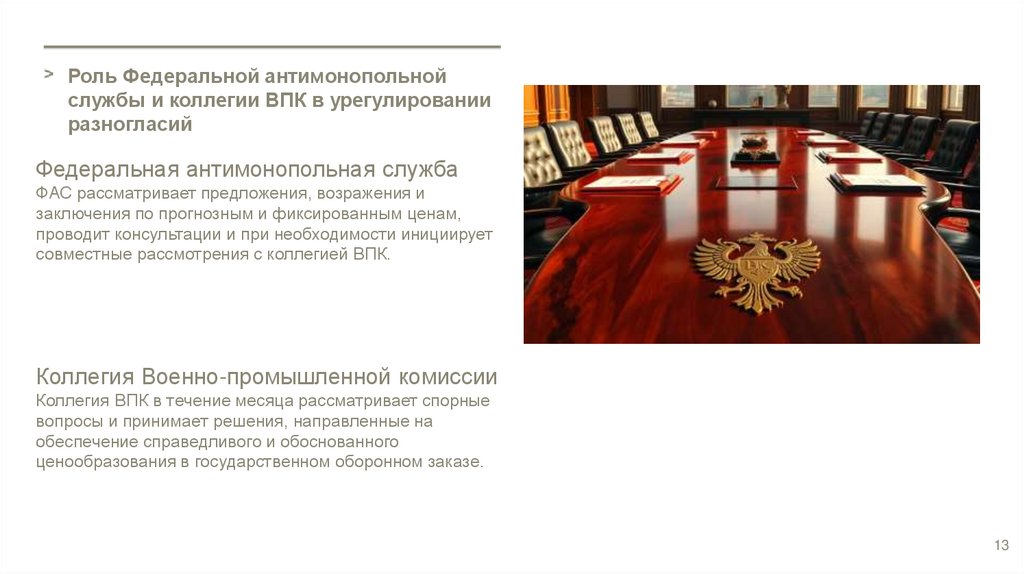 Роль Федеральной антимонопольнойслужбы и коллегии ВПК в урегулировании