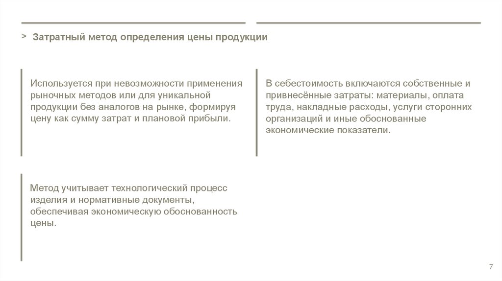 Затратный метод определения цены продукцииИспользуется при невозможности применения