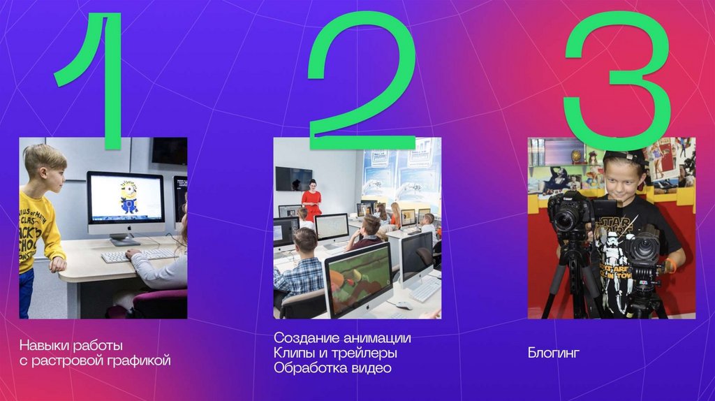 включают обучение созданию медийного контента, развитию