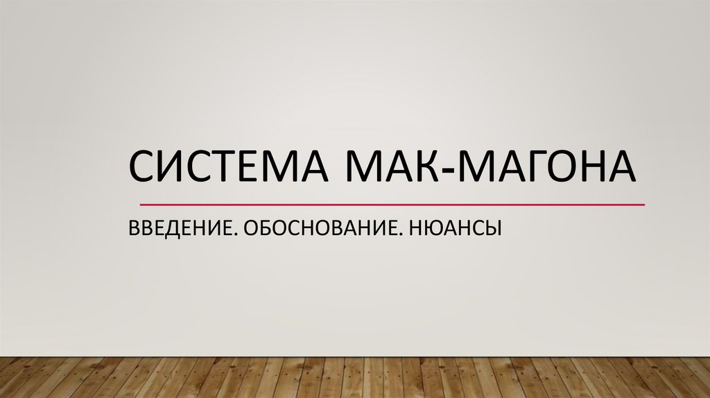 СИСТЕМА МАК-МАГОНАВВЕДЕНИЕ. ОБОСНОВАНИЕ. НЮАНСЫ