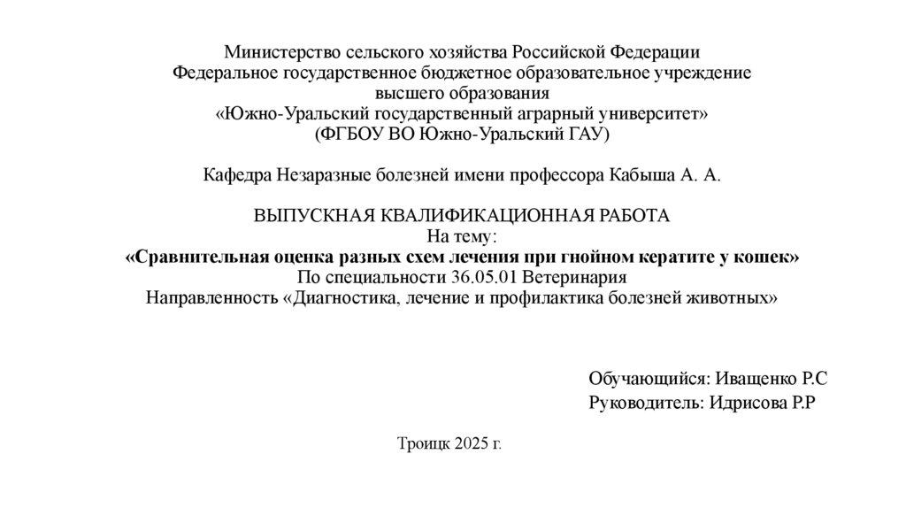 1. Министерство сельского хозяйства Российской Федерации Федеральное государственное бюджетное образовательное учреждение высшего