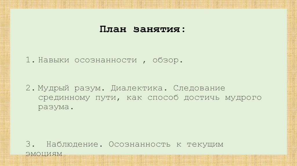 1. Навыки осознанности , обзор.2. Мудрый разум. Диалектика. Следование