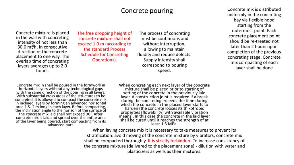 mix fed into the formwork. The concrete mix in the laid layer shall be compacted only