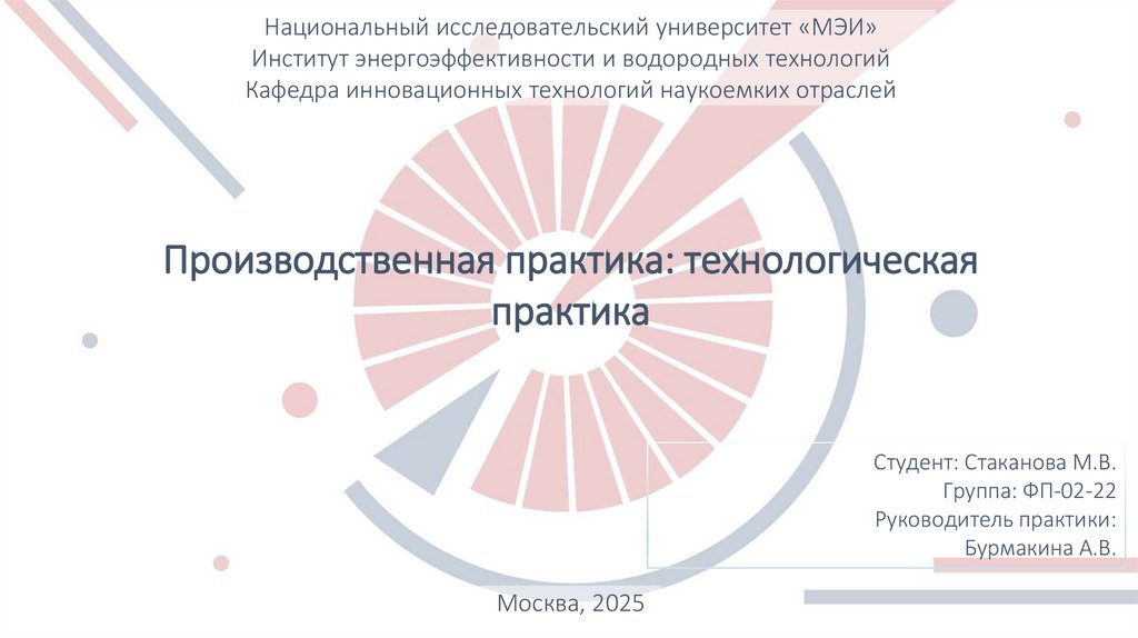 Национальный исследовательский университет «МЭИ»Институт энергоэффективности и водородных технологий