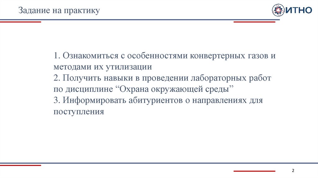 Задание на практику1. Ознакомиться с особенностями конвертерных газов и