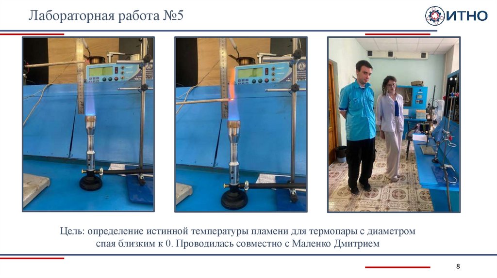 Лабораторная работа №5Цель: определение истинной температуры пламени для термопары с диаметром