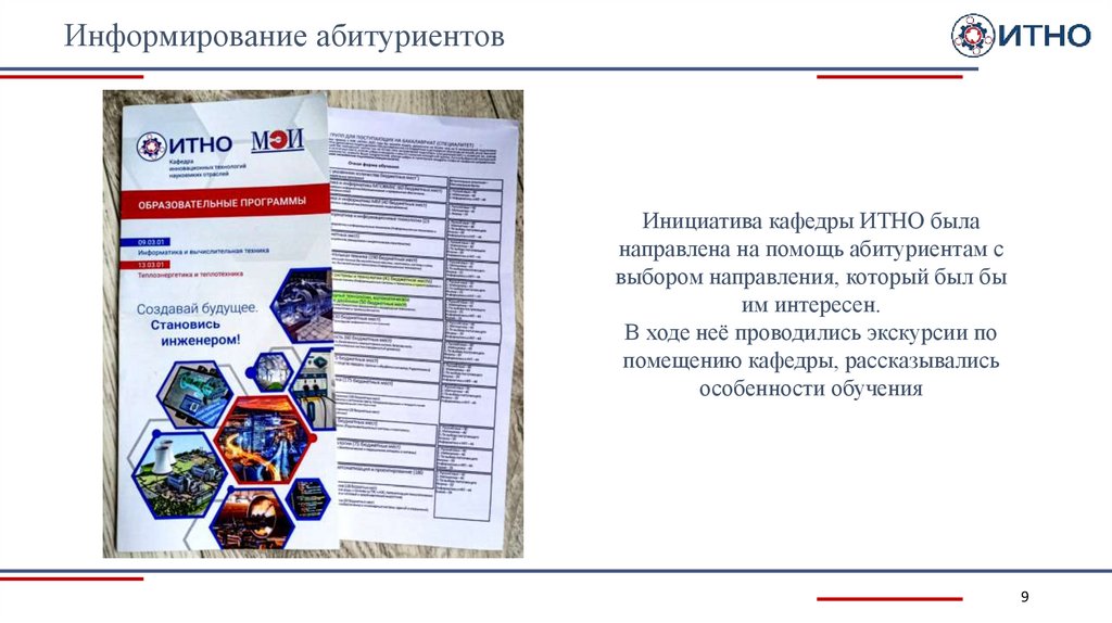 Информирование абитуриентовИнициатива кафедры ИТНО была