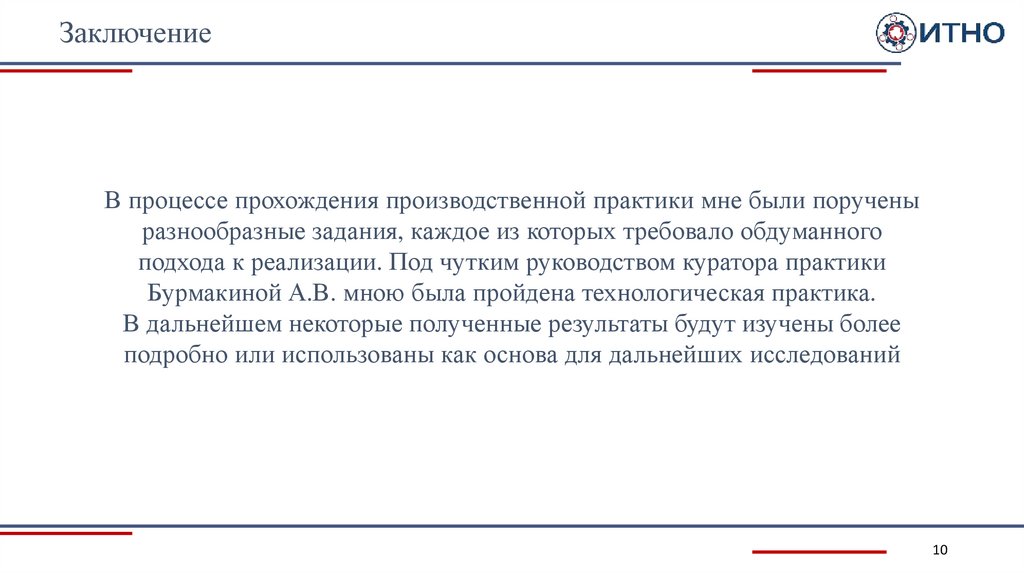 ЗаключениеВ процессе прохождения производственной практики мне были поручены