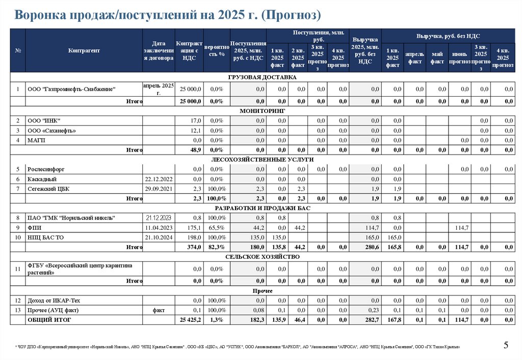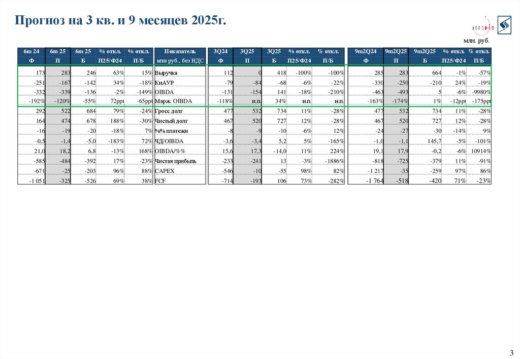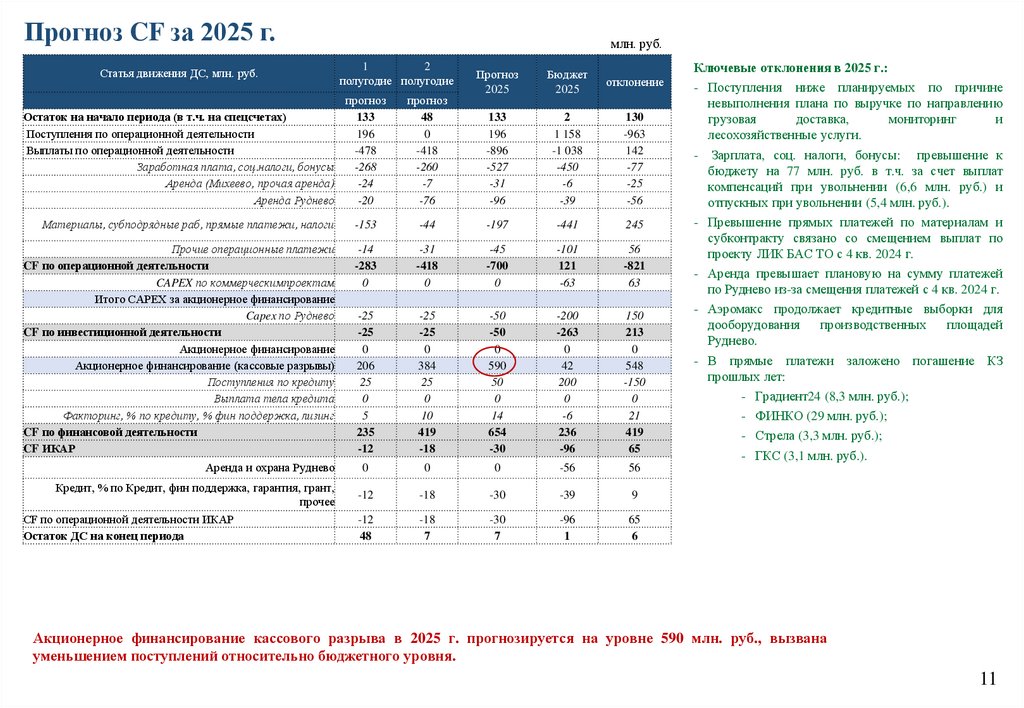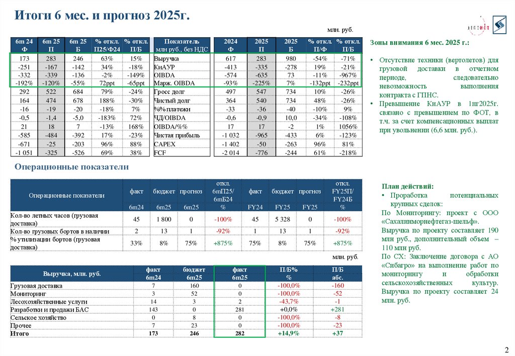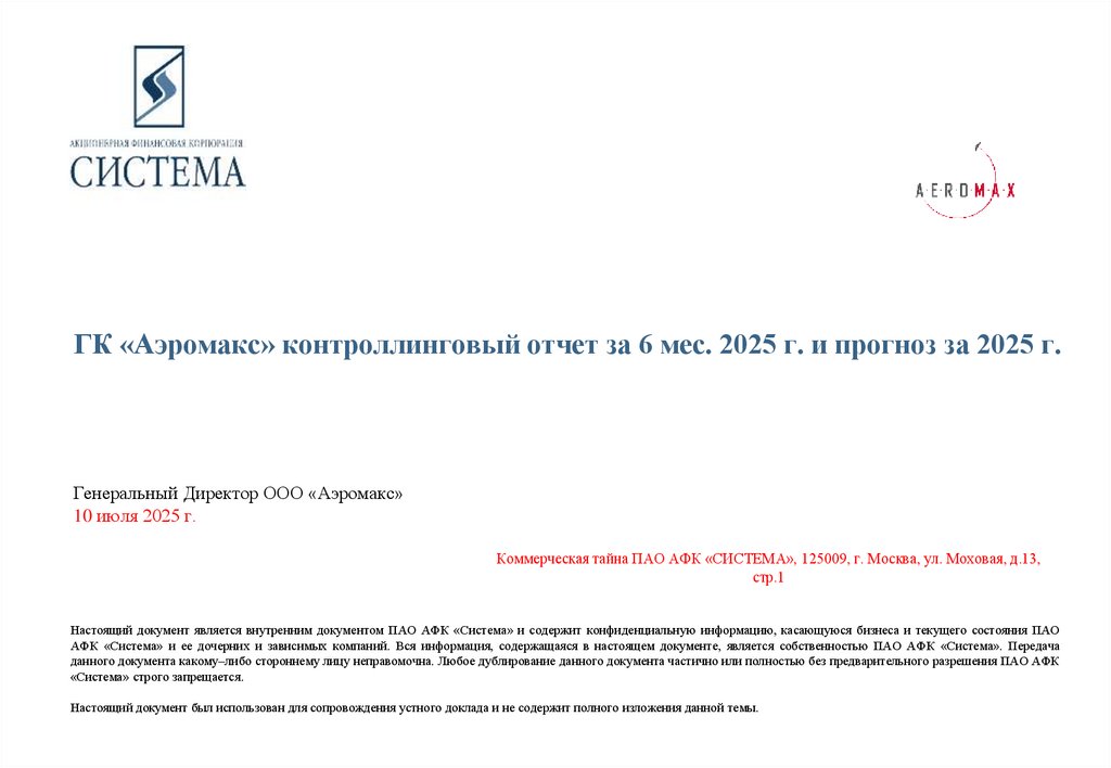 1. ГК «Аэромакс» контроллинговый отчет за 6 мес. 2025 г. и прогноз за 2025 г.