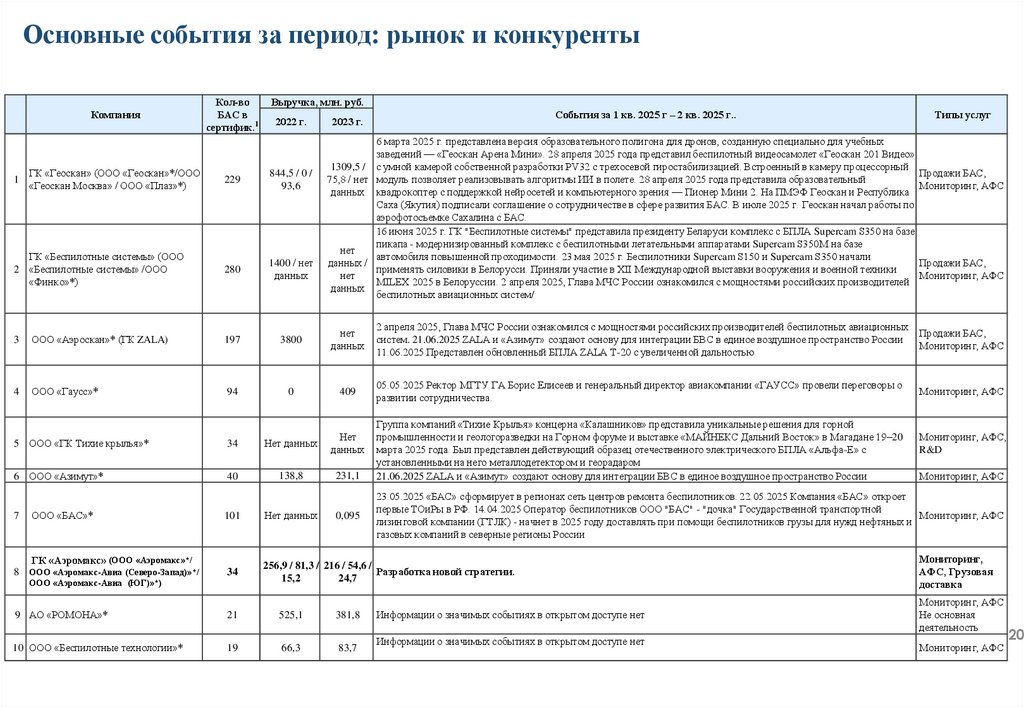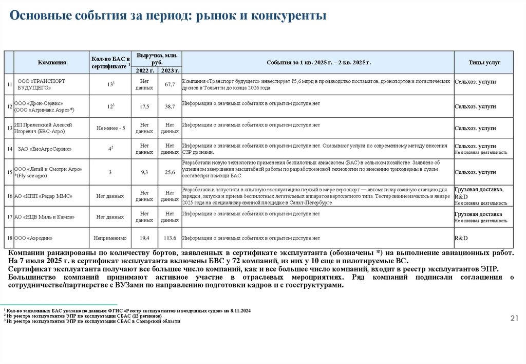 требований для БАС компании, в текущем