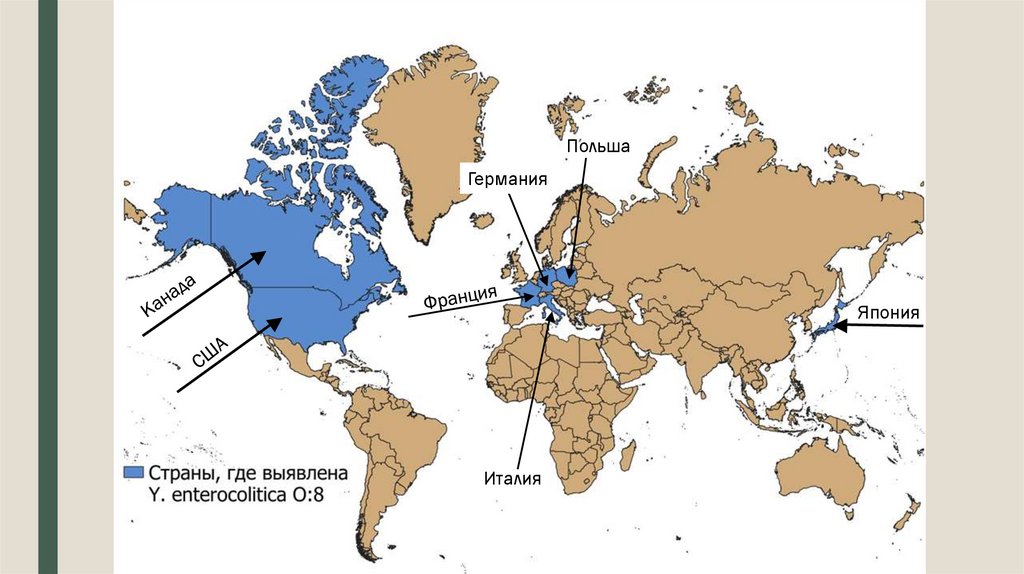 1. Эпидемиологическая ситуация по кишечному иерсиниозу, вызванному Y. enterocolitica 1B/O:8 в различных странах мира